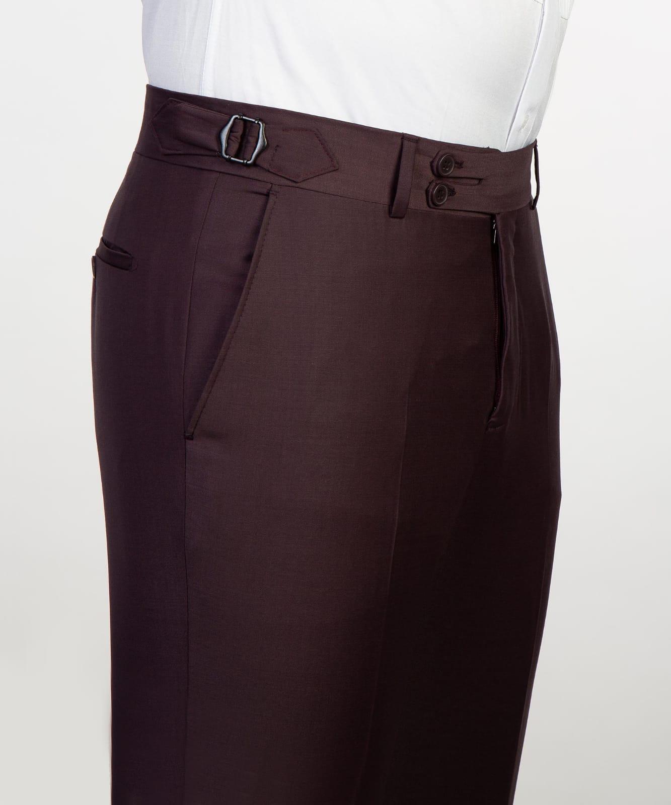 - Flat front trousers with adjustable waist tabs