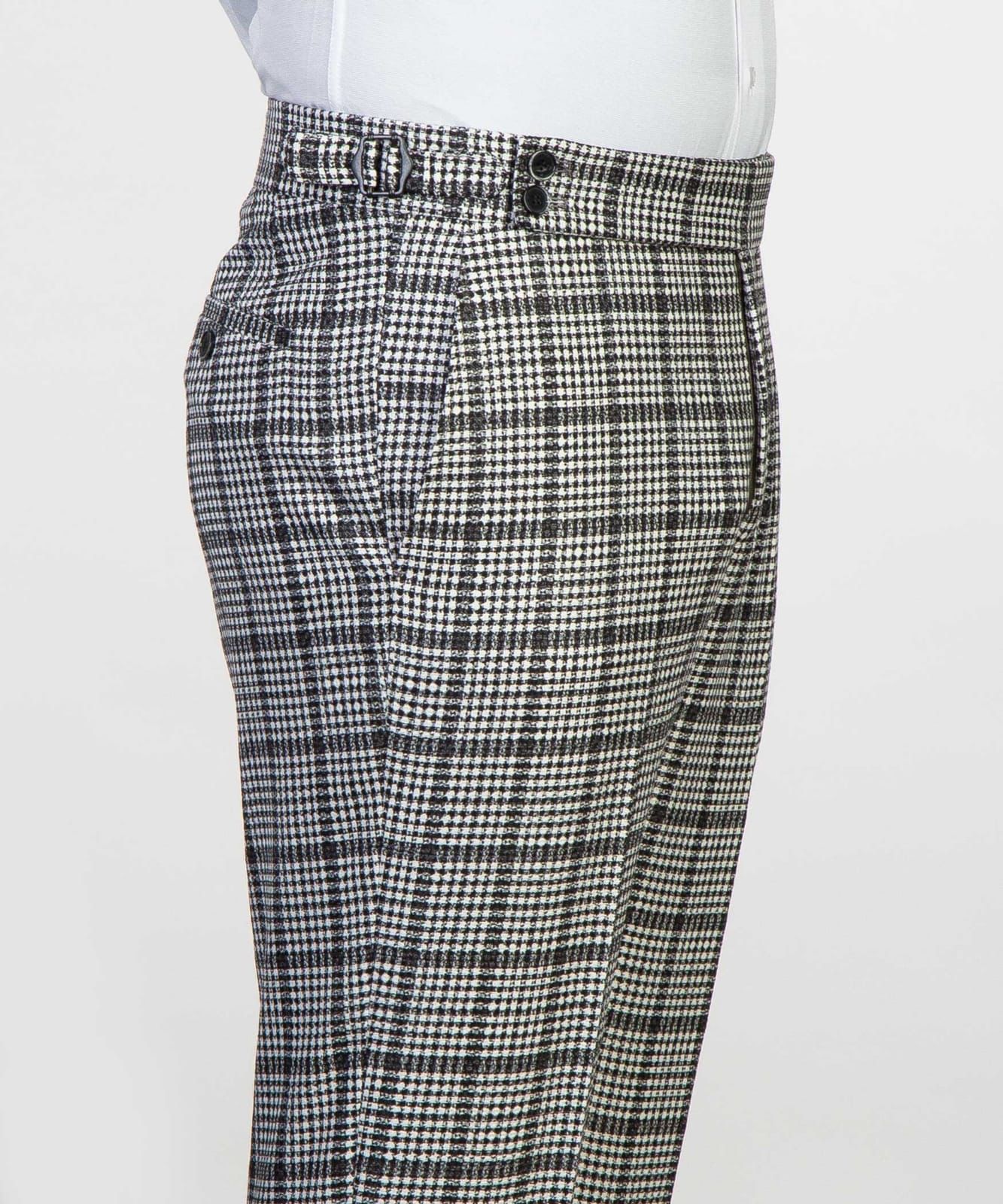 - Flat front trousers with adjustable waist tabs